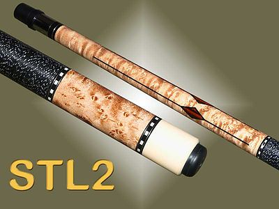 Schon Cues STL2DS has a dark stained Birdseye Maple forearm with 4 floating ebony inlays with Cocobolo diamonds. Completing the cue is custom Schon rings and black and white Irish linen. Please Note - Stains Color, Inlay Material, and butt cap color may be different than that show. Schon Cues policy is to use a variety of different stains, inlays materials, and butt colors to help ensure the uniqueness of each cue. The actual cue design will remain the same.
